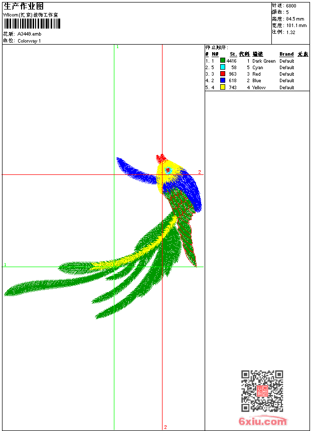 鸟 点此上传花版兑乐绣币/现金 emb花版参数: 大小:60.50 KB / 尺寸:101*84[毫米] / 针数:6800针 / 线色:5 / 格式:emb / 版本:e2 版带文件需绣花软件方可打开,可配色打印导出各种格式或直接上机绣。如无绣花软件可下载1:1模拟效果图。 PNG图片信息:大小:0.1 (MB) /图宽*高:383x320(像素) emb下载 1:1图下载 关闭 相似花版: 抽象 章标 靓花 人物 头像 人物 头像 章标 章标 章标 章标 章标 章标 章标 章标 章标 骷髅 王冠 靓花 狮标 鸟 保罗 polo 鸟 人物 上一个花样:蜜蜂 下一个花样:抽象