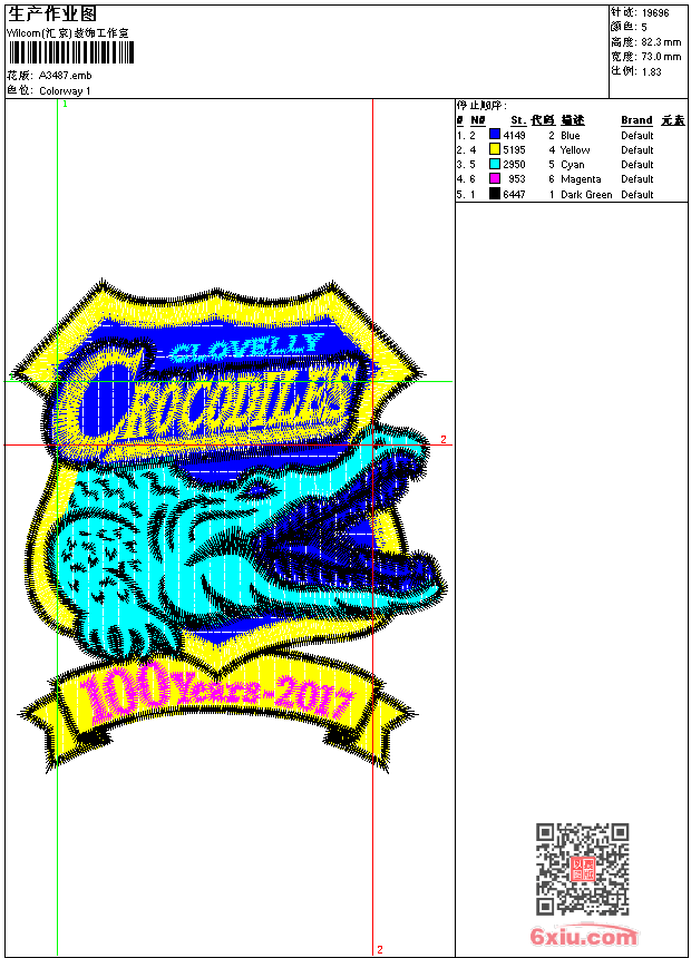 鳄鱼章 点此上传花版兑乐绣币/现金 emb花版参数: 大小:118.50 KB / 尺寸:73*82[毫米] / 针数:19696针 / 线色:5 / 格式:emb / 版本:e2 版带文件需绣花软件方可打开,可配色打印导出各种格式或直接上机绣。如无绣花软件可下载1:1模拟效果图。 PNG图片信息:大小:0.1 (MB) /图宽*高:277x312(像素) emb下载 1:1图下载 关闭 相似花版: 靓花 简单花 摩托车标 骷髅章 龙凤 龙 靓花 翅膀 领 鸟靓花 章鱼 章仔 虎头 鹰 美女 鹰 靓花 靓花 靓花 蝴蝶 上一个花样:龙凤 中国风 下一个花样:靓花