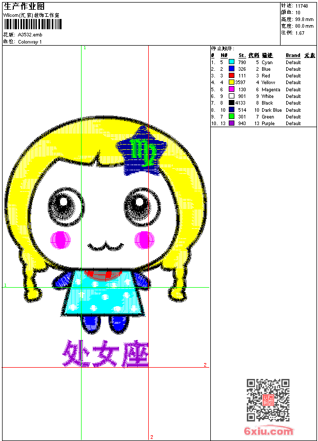 星座 卡通 上传花版得乐绣币/现金 emb花版参数: 大小:82.50 KB / 尺寸:80*100[毫米] / 针数:11748针 / 线色:10 / 格式:emb / 版本:e2 版带文件需绣花软件方可打开,可配色打印导出各种格式或直接上机绣。如无绣花软件可下载1:1模拟效果图。 模拟图片信息:大小:0.1(MB) /图宽*高:303x378(像素) emb下载 1:1图下载 收藏本图 关闭 相似花版: 星座 卡通 星座 卡通 星座 卡通 星座 卡通 星座 卡通 星座 卡通 星座 卡通 星座 卡通 星座 卡通 星座 卡通 星座 卡通 星座 卡通 星座 卡通 鲤鱼 中国传统吉祥画 猫头 狗 靓花条 靓花 靓花 靓花 上一个花样:星座 卡通 下一个花样:星座 卡通