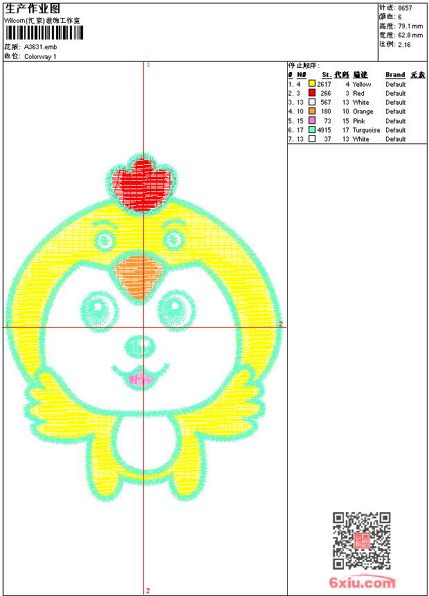 星座 卡通 点此上传花版兑乐绣币/现金 emb花版参数: 大小:80.00 KB / 尺寸:63*79[毫米] / 针数:8657针 / 线色:6 / 格式:emb / 版本:e2 版带文件需绣花软件方可打开,可配色打印导出各种格式或直接上机绣。如无绣花软件可下载1:1模拟效果图。 PNG图片信息:大小:0.1 (MB) /图宽*高:238x300(像素) emb下载 1:1图下载 关闭 相似花版: 凤凰 汉服 叶子 汉服 星座 卡通 水溶条码 蜻蜓 吉祥花 老虎 吉祥花 吉祥花 吉祥花 吉祥花 简单花 靓花 简单花 鸟 靓花 鱼 珠片 花条 上一个花样:靓花 下一个花样:凤凰