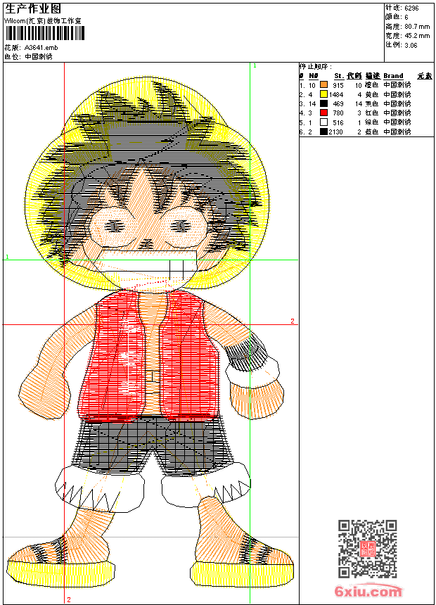 卡通 动漫 点此上传花版兑乐绣币/现金 emb花版参数: 大小:62.00 KB / 尺寸:45*81[毫米] / 针数:6296针 / 线色:6 / 格式:emb / 版本:e2 版带文件需绣花软件方可打开,可配色打印导出各种格式或直接上机绣。如无绣花软件可下载1:1模拟效果图。 PNG图片信息:大小:0.1 (MB) /图宽*高:172x306(像素) emb下载 1:1图下载 关闭 相似花版: 虎头 汉服 汉服 汉服 汉服 汉服 汉服 男 火水光风暗富 靓花 星座 卡通 凤凰 汉服 叶子 汉服 星座 卡通 水溶条码 蜻蜓 吉祥花 老虎 吉祥花 上一个花样:狮标珠片 下一个花样:虎头