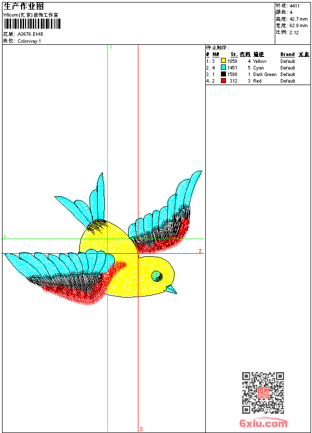 鸟 点此上传花版兑乐绣币/现金 emb花版参数: 大小:53.00 KB / 尺寸:63*43[毫米] / 针数:4411针 / 线色:4 / 格式:emb / 版本:e2 版带文件需绣花软件方可打开,可配色打印导出各种格式或直接上机绣。如无绣花软件可下载1:1模拟效果图。 PNG图片信息:大小:0.1(MB) /图宽*高:238x162(像素) emb下载 1:1图下载 关闭 相似花版: 章标 豹标 公鸡 龙 章标 猫 珠片 猫头 珠片 靓花 鹤 保罗 polo 龙王标 章标 车标 奇瑞 v logo burberry logo 保罗 polo 车标 奇瑞 章标 恐龙 珠片 鸟 上一个花样:鸟 下一个花样:章标