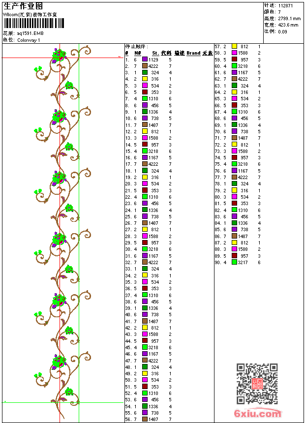 • emb花版参数: 大小:667.00 KB / 尺寸:424*2799[毫米] / 针数:112871针 / 线色:7 / 格式:emb / 版本:e2