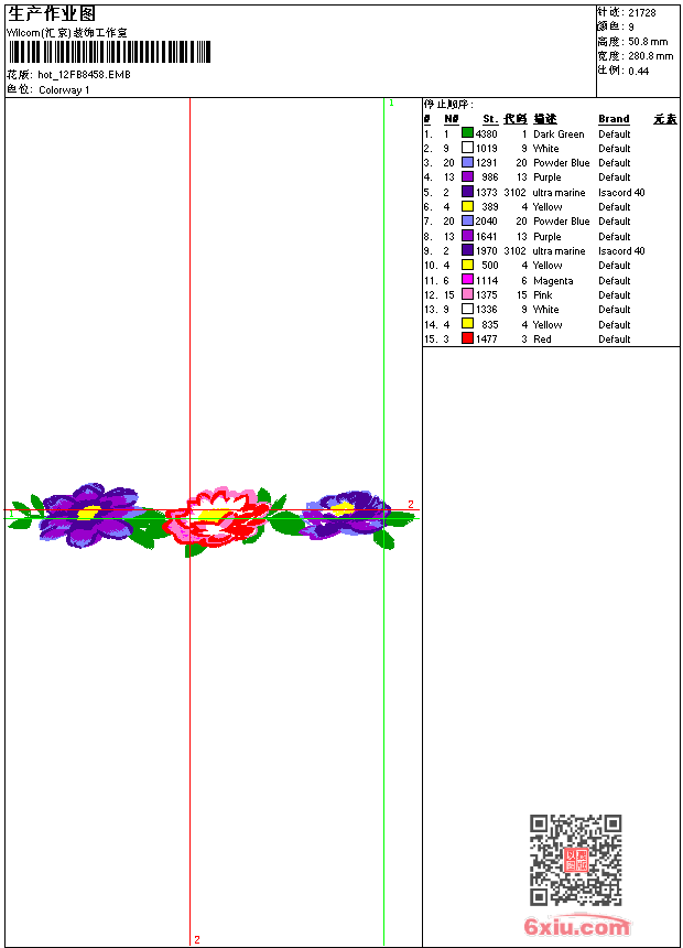 花条 点此上传花版兑乐绣币/现金 emb花版参数: 大小:183.50 KB / 尺寸:281*51[毫米] / 针数:21728针 / 线色:9 / 格式:emb / 版本:e2 版带文件需绣花软件方可打开,可配色打印导出各种格式或直接上机绣。如无绣花软件可下载1:1模拟效果图。 PNG图片信息:大小:0.3 (MB) /图宽*高:1063x193(像素) emb下载 1:1图下载 关闭 相似花版: 台布 凤凰 汉服 鞋垫 靓花 旗袍 鸟语花香 旗袍 简单花 凤凰 靓花 旗袍 豹标男 抽象 少数民族风格 汉服 狼头 靓花 汉服 虎头 靓花 汉服 靓花 神话 女娲补天 鞋 武将 宋 蝴蝶 靓花 上一个花样:汉服 下一个花样:台布