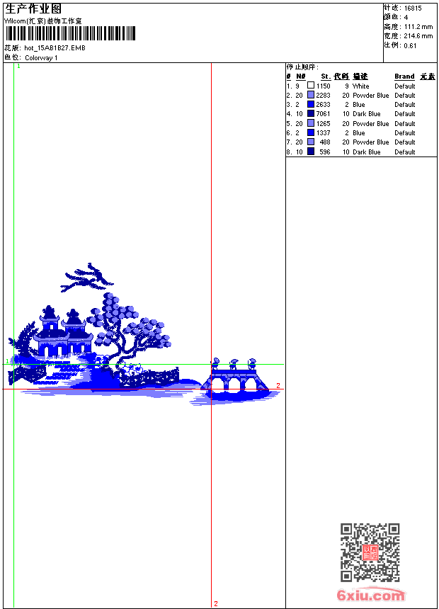 风景 亭台楼阁 点此上传花版兑乐绣币/现金 emb花版参数: 大小:120.00 KB / 尺寸:215*111[毫米] / 针数:16815针 / 线色:4 / 格式:emb / 版本:e2 版带文件需绣花软件方可打开,可配色打印导出各种格式或直接上机绣。如无绣花软件可下载1:1模拟效果图。 PNG图片信息:大小:0.3 (MB) /图宽*高:812x421(像素) emb下载 1:1图下载 关闭 相似花版: 靓花 豹 鸟 燕子 蝴蝶 鹤汉服 汉服 花条 台布 凤凰 汉服 鞋垫 靓花 旗袍 鸟语花香 旗袍 简单花 凤凰 靓花 旗袍 豹标男 抽象 少数民族风格 汉服 狼头 靓花 汉服 上一个花样:狐狸 九尾狐 下一个花样:靓花