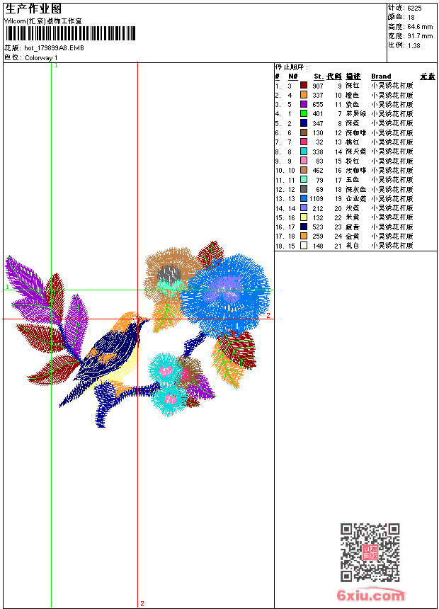 鸟 点此上传花版兑乐绣币/现金 emb花版参数: 大小:80.50 KB / 尺寸:92*65[毫米] / 针数:6225针 / 线色:18 / 格式:emb / 版本:e2 版带文件需绣花软件方可打开,可配色打印导出各种格式或直接上机绣。如无绣花软件可下载1:1模拟效果图。 PNG图片信息:大小:0.1 (MB) /图宽*高:347x245(像素) emb下载 1:1图下载 关闭 相似花版: 十字绣 龙 鞋 凤凰 凤凰 红包拿来 保罗 龙一半 靓花 兔 狐狸 九尾狐 风景 亭台楼阁 靓花 豹 鸟 燕子 蝴蝶 鹤汉服 汉服 花条 台布 凤凰 汉服 上一个花样:尾巴草 下一个花样:十字绣
