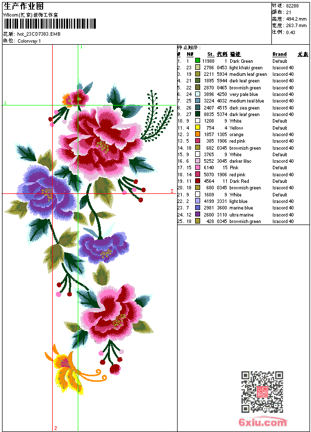 靓花 旗袍 点此上传花版兑乐绣币/现金 emb花版参数: 大小:409.50 KB / 尺寸:264*494[毫米] / 针数:82288针 / 线色:21 / 格式:emb / 版本:e2 版带文件需绣花软件方可打开,可配色打印导出各种格式或直接上机绣。如无绣花软件可下载1:1模拟效果图。 PNG图片信息:大小:1.7 (MB) /图宽*高:998x1870(像素) emb下载 1:1图下载 关闭 相似花版: 汉服 马 飞马 简单花 男章标 汉服 鲨鱼 鞋垫马 扇子 鸟 猪 野猪 靓花 汉服 插针花 人物 岳飞 武将 豹头 靓花 座 台布 鸟 鸟 梅花鹿 上一个花样:章 越野e族 下一个花样:汉服