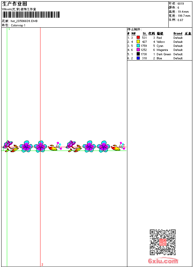 花条 点此上传花版兑乐绣币/现金 emb花版参数: 大小:56.00 KB / 尺寸:200*19[毫米] / 针数:6019针 / 线色:6 / 格式:emb / 版本:e2 版带文件需绣花软件方可打开,可配色打印导出各种格式或直接上机绣。如无绣花软件可下载1:1模拟效果图。 PNG图片信息:大小:0.1 (MB) /图宽*高:756x74(像素) emb下载 1:1图下载 关闭 相似花版: 圆抽象 靓花 十字绣 靓花 鸟 花瓶 靓花 旗袍 狮标 狗 鞋垫 十字绣 靓花 汉服 蜜蜂 鲤鱼 靓花 旗袍 简单花 简单花 十字绣 孔雀 蝴蝶 熊猫 靓花 上一个花样:牛羊 下一个花样:圆抽象