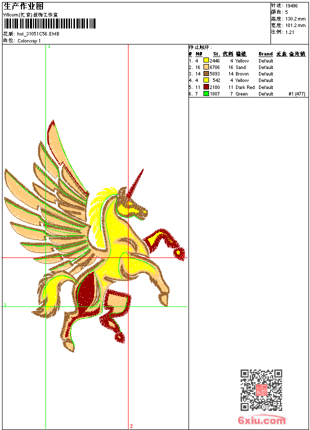 飞马 点此上传花版兑乐绣币/现金 emb花版参数: 大小:175.50 KB / 尺寸:101*130[毫米] / 针数:19496针 / 线色:5 / 格式:emb / 版本:e2 版带文件需绣花软件方可打开,可配色打印导出各种格式或直接上机绣。如无绣花软件可下载1:1模拟效果图。 PNG图片信息:大小:0.1 (MB) /图宽*高:383x493(像素) emb下载 1:1图下载 关闭 相似花版: 汉服 靓花 旗袍 鹤 汉服 扇子 龙 树林 龙 花瓶 靓花 汉服 梅花鹿 骷髅玫瑰花 鹰标 牛羊 花条 圆抽象 靓花 十字绣 靓花 鸟 花瓶 靓花 旗袍 上一个花样:靓花 旗袍 下一个花样:汉服