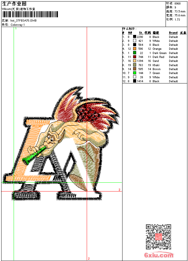 鬼怪 点此上传花版兑乐绣币/现金 emb花版参数: 大小:86.00 KB / 尺寸:76*74[毫米] / 针数:8968针 / 线色:9 / 格式:emb / 版本:e2 版带文件需绣花软件方可打开,可配色打印导出各种格式或直接上机绣。如无绣花软件可下载1:1模拟效果图。 PNG图片信息:大小:0.1 (MB) /图宽*高:287x279(像素) emb下载 1:1图下载 关闭 相似花版: 汉服 汉服 飞象 人物 体操 鱼 鞋垫 抽象 圆 花草蝴蝶 人物男 蝴蝶 靓花 鹰头 米奇 孔雀 汉服 靓花 波浪 古代 官服 鸟 蜜蜂 汉服 上一个花样:汉服 下一个花样:汉服