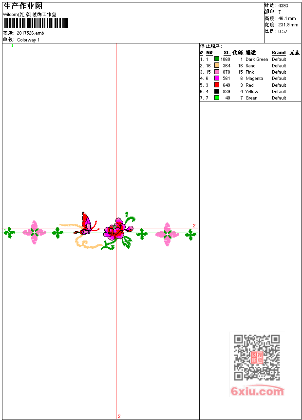 汉服 点此上传花版兑乐绣币/现金 emb花版参数: 大小:63.00 KB / 尺寸:232*46[毫米] / 针数:4393针 / 线色:7 / 格式:emb / 版本:e2 版带文件需绣花软件方可打开,可配色打印导出各种格式或直接上机绣。如无绣花软件可下载1:1模拟效果图。 PNG图片信息:大小:0.1 (MB) /图宽*高:878x175(像素) emb下载 1:1图下载 关闭 相似花版: 鬼怪 汉服 汉服 飞象 人物 体操 鱼 鞋垫 抽象 圆 花草蝴蝶 人物男 蝴蝶 靓花 鹰头 米奇 孔雀 汉服 靓花 波浪 古代 官服 鸟 蜜蜂 上一个花样:龙 下一个花样:鬼怪