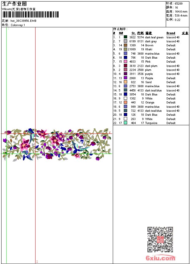 鸟 点此上传花版兑乐绣币/现金 emb花版参数: 大小:426.00 KB / 尺寸:539*165[毫米] / 针数:65289针 / 线色:16 / 格式:emb / 版本:e2 版带文件需绣花软件方可打开,可配色打印导出各种格式或直接上机绣。如无绣花软件可下载1:1模拟效果图。 PNG图片信息:大小:1.4 (MB) /图宽*高:2041x623(像素) emb下载 1:1图下载 关闭 相似花版: 梅花鹿 抽象 龙 汉服 鬼怪 汉服 汉服 飞象 人物 体操 鱼 鞋垫 抽象 圆 花草蝴蝶 人物男 蝴蝶 靓花 鹰头 米奇 孔雀 汉服 上一个花样:字 恭喜发财 下一个花样:梅花鹿