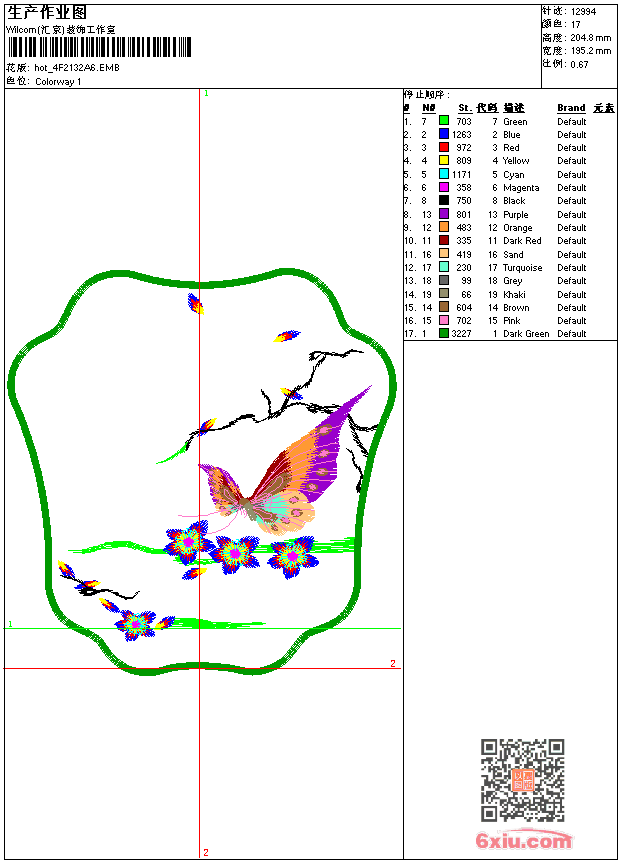 扇子 蝴蝶 点此上传花版兑乐绣币/现金 emb花版参数: 大小:119.00 KB / 尺寸:195*205[毫米] / 针数:12994针 / 线色:17 / 格式:emb / 版本:e2 版带文件需绣花软件方可打开,可配色打印导出各种格式或直接上机绣。如无绣花软件可下载1:1模拟效果图。 PNG图片信息:大小:0.3 (MB) /图宽*高:739x775(像素) emb下载 1:1图下载 关闭 相似花版: 鞋垫 靓花 旗袍 刺猬 鞋孙悟空 鞋 靓花 鞋垫 十字绣 龙圆 豹头 鞋 京剧人物 靓花 汉服 狐狸 九尾狐 鞋 保罗 靓花 领 鸟 汉服 梅花 上一个花样:章标 下一个花样:鞋垫
