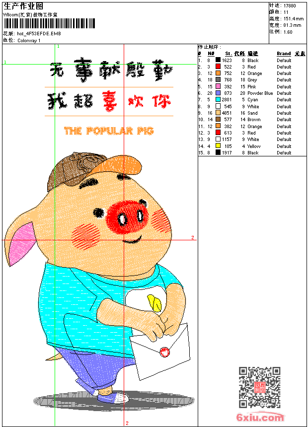 猪 点此上传花版兑乐绣币/现金 emb花版参数: 大小:117.50 KB / 尺寸:81*151[毫米] / 针数:17880针 / 线色:11 / 格式:emb / 版本:e2 版带文件需绣花软件方可打开,可配色打印导出各种格式或直接上机绣。如无绣花软件可下载1:1模拟效果图。 PNG图片信息:大小:0.2 (MB) /图宽*高:308x573(像素) emb下载 1:1图下载 关闭 相似花版: 红包拿来 章标 扇子 蝴蝶 鞋垫 靓花 旗袍 刺猬 鞋孙悟空 鞋 靓花 鞋垫 十字绣 龙圆 豹头 鞋 京剧人物 靓花 汉服 狐狸 九尾狐 鞋 保罗 靓花 领 上一个花样:鸟 下一个花样:红包拿来
