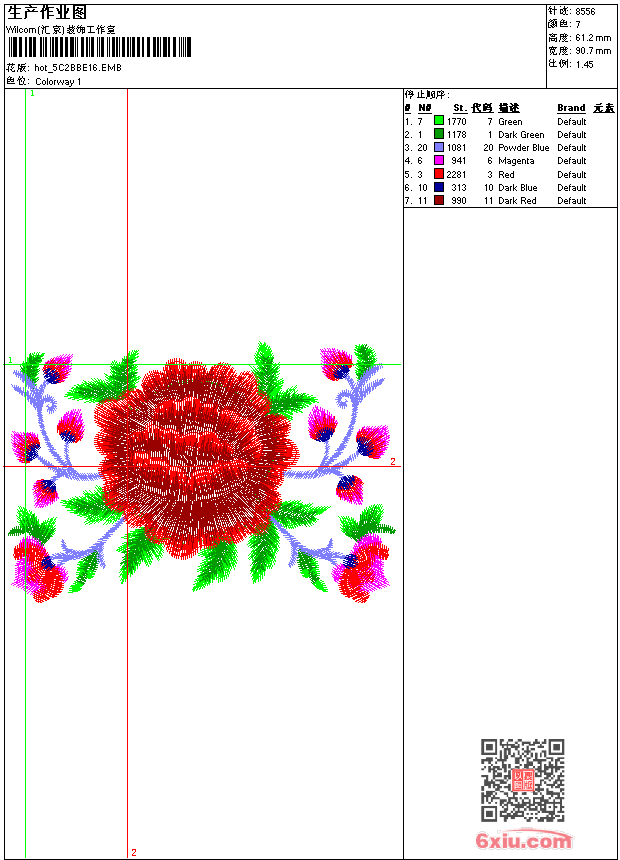 靓花 点此上传花版兑乐绣币/现金 emb花版参数: 大小:87.50 KB / 尺寸:91*61[毫米] / 针数:8556针 / 线色:7 / 格式:emb / 版本:e2 版带文件需绣花软件方可打开,可配色打印导出各种格式或直接上机绣。如无绣花软件可下载1:1模拟效果图。 PNG图片信息:大小:0.1 (MB) /图宽*高:344x232(像素) emb下载 1:1图下载 关闭 相似花版: 鞋垫 美人鱼珠片 麒麟 猪 猫头 汉服 靓花 猪 汉服 鹤 汉服 汉服 靓花 汉服 虎 美女骑老虎 金鱼 虎头 豹头 汉服 狼头 汉服 上一个花样:靓花 兰花 下一个花样:鞋垫