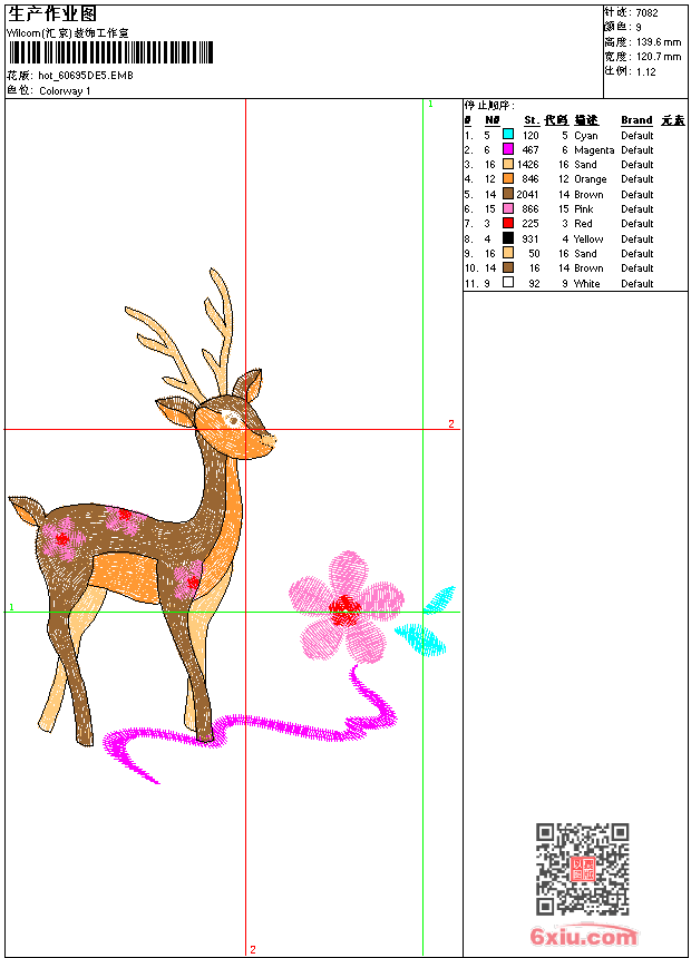 梅花鹿 点此上传花版兑乐绣币/现金 emb花版参数: 大小:82.00 KB / 尺寸:121*140[毫米] / 针数:7082针 / 线色:9 / 格式:emb / 版本:e2 版带文件需绣花软件方可打开,可配色打印导出各种格式或直接上机绣。如无绣花软件可下载1:1模拟效果图。 PNG图片信息:大小:0.2 (MB) /图宽*高:457x529(像素) emb下载 1:1图下载 关闭 相似花版: 鞋 狗头 鸟 猪 老虎下山 保罗 伞 兔 花草 老虎 保罗 鸟语花香 麒麟 汉服 鲤鱼 鞋 鬼怪 飞马 人物 印第安人 鸟 猪 蜘蛛 上一个花样:靓花 下一个花样:鞋