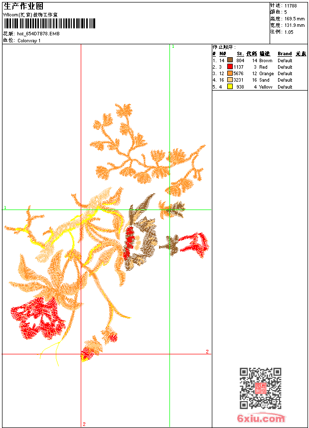 汉服 点此上传花版兑乐绣币/现金 emb花版参数: 大小:113.50 KB / 尺寸:132*170[毫米] / 针数:11788针 / 线色:5 / 格式:emb / 版本:e2 版带文件需绣花软件方可打开,可配色打印导出各种格式或直接上机绣。如无绣花软件可下载1:1模拟效果图。 PNG图片信息:大小:0.2 (MB) /图宽*高:500x642(像素) emb下载 1:1图下载 关闭 相似花版: 狐狸 孔雀 靓花 男章标 人物 嫦娥奔月 神话 龙 背景墙 龙 龙 变色龙翅膀 靓花 梅花鹿 鞋 狗头 鸟 猪 老虎下山 保罗 伞 兔 花草 老虎 上一个花样:靓花 旗袍 下一个花样:狐狸