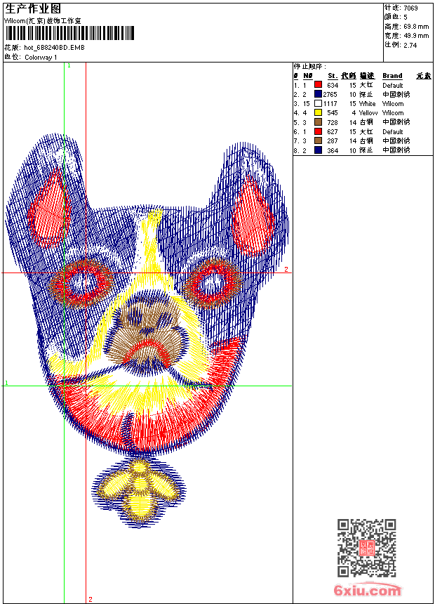 狗 点此上传花版兑乐绣币/现金 emb花版参数: 大小:68.00 KB / 尺寸:50*70[毫米] / 针数:7069针 / 线色:5 / 格式:emb / 版本:e2 版带文件需绣花软件方可打开,可配色打印导出各种格式或直接上机绣。如无绣花软件可下载1:1模拟效果图。 PNG图片信息:大小:0.1 (MB) /图宽*高:189x264(像素) emb下载 1:1图下载 关闭 相似花版: 虎头 靓花 靓花 旗袍 鞋垫 汉服 荷花 靓花朵 简单花 汉服 鞋垫 靓花 太极 蜜蜂 国旗 靓花 靓花 匹绣 满幅 保罗 鸟语花香 靓花 旗袍 汉服 狐狸 上一个花样:鸟 树 下一个花样:虎头