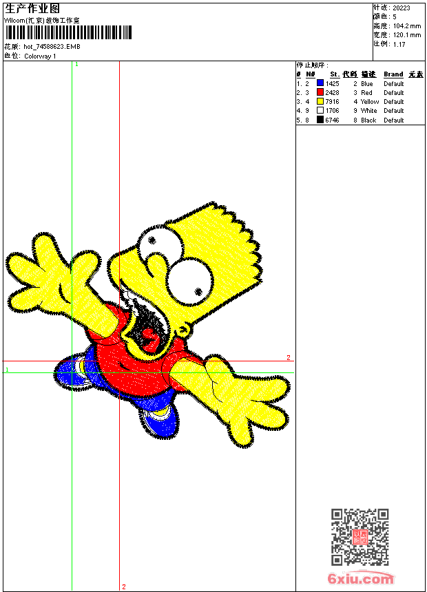 动漫 辛普森 点此上传花版兑乐绣币/现金 emb花版参数: 大小:117.50 KB / 尺寸:120*104[毫米] / 针数:20223针 / 线色:5 / 格式:emb / 版本:e2 版带文件需绣花软件方可打开,可配色打印导出各种格式或直接上机绣。如无绣花软件可下载1:1模拟效果图。 PNG图片信息:大小:0.2 (MB) /图宽*高:455x395(像素) emb下载 1:1图下载 关闭 相似花版: 保罗 汉服 靓花 龙 保罗 鹤 飞象 鞋垫 凤凰 靓花朵 靓花 精品 牡丹花 花开富贵 翅膀 梅花鹿 汉服 菊花 汉服 鞋垫 猫 简单花 靓花 荷花 靓花 上一个花样:鹤 火烈鸟 下一个花样:保罗