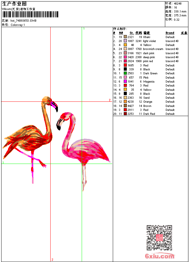 鹤 火烈鸟 点此上传花版兑乐绣币/现金 emb花版参数: 大小:357.00 KB / 尺寸:375*330[毫米] / 针数:40248针 / 线色:16 / 格式:emb / 版本:e2 版带文件需绣花软件方可打开,可配色打印导出各种格式或直接上机绣。如无绣花软件可下载1:1模拟效果图。 PNG图片信息:大小:1.0 (MB) /图宽*高:1420x1249(像素) emb下载 1:1图下载 关闭 相似花版: 动漫 辛普森 保罗 汉服 靓花 龙 保罗 鹤 飞象 鞋垫 凤凰 靓花朵 靓花 精品 牡丹花 花开富贵 翅膀 梅花鹿 汉服 菊花 汉服 鞋垫 猫 简单花 靓花 荷花 上一个花样:简单花 下一个花样:动漫 辛普森