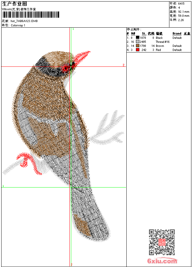 鸟 点此上传花版兑乐绣币/现金 emb花版参数: 大小:69.50 KB / 尺寸:59*92[毫米] / 针数:6415针 / 线色:4 / 格式:emb / 版本:e2 版带文件需绣花软件方可打开,可配色打印导出各种格式或直接上机绣。如无绣花软件可下载1:1模拟效果图。 PNG图片信息:大小:0.1 (MB) /图宽*高:224x349(像素) emb下载 1:1图下载 关闭 相似花版: 靓花 旗袍 十字绣 靓花 旗袍 汉服 靓花 龙 十字绣玫瑰花 鸳鸯鸟 人物鬼怪 瓶 花瓶 汉服 F标志 鞋人物鬼怪 靓花 飞机 梅花鹿 墙布 男章 鹤 鞋 京剧人物 上一个花样:抽象 下一个花样:靓花 旗袍