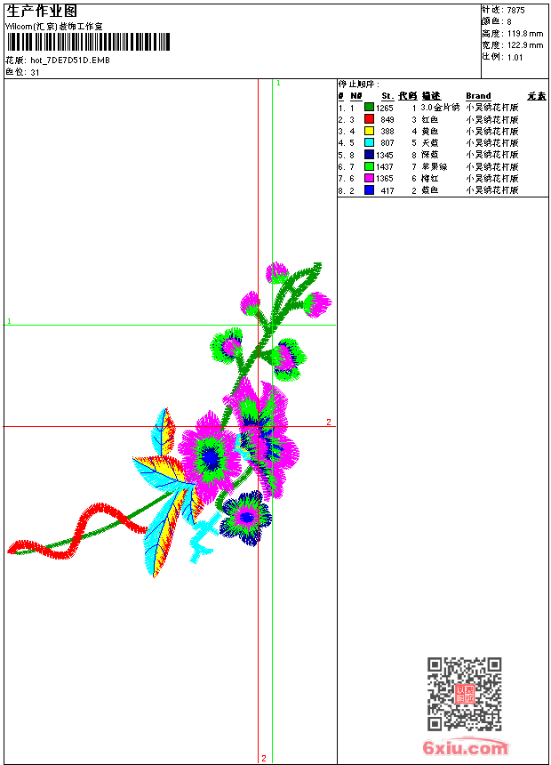 汉服 点此上传花版兑乐绣币/现金 emb花版参数: 大小:78.00 KB / 尺寸:123*120[毫米] / 针数:7875针 / 线色:8 / 格式:emb / 版本:e2 版带文件需绣花软件方可打开,可配色打印导出各种格式或直接上机绣。如无绣花软件可下载1:1模拟效果图。 PNG图片信息:大小:0.1 (MB) /图宽*高:466x454(像素) emb下载 1:1图下载 关闭 相似花版: 汉服 汉服 靓花 靓花 靓花 靓花 旗袍 鞋 龙王 靓花 金猪 荷花 抽象 鸟 靓花 旗袍 十字绣 靓花 旗袍 汉服 靓花 龙 十字绣玫瑰花 鸳鸯鸟 上一个花样:靓花 旗袍 下一个花样:汉服