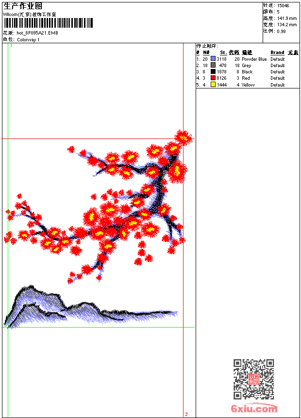 梅花山 点此上传花版兑乐绣币/现金 emb花版参数: 大小:118.50 KB / 尺寸:134*142[毫米] / 针数:15046针 / 线色:5 / 格式:emb / 版本:e2 版带文件需绣花软件方可打开,可配色打印导出各种格式或直接上机绣。如无绣花软件可下载1:1模拟效果图。 PNG图片信息:大小:0.2 (MB) /图宽*高:508x537(像素) emb下载 1:1图下载 关闭 相似花版: 鞋 人物 武将 靓花 汉服 雨伞 鹤 鸟 鲤鱼 靓花 旗袍 男 章标 武士 凤凰 简单花 狮子 翅膀 老虎 东北虎 简单花 狗 日本土狗 秋天犬 保罗 兔 鞋垫 靓花 匹绣 鹤 鸟 飞马 靓花 上一个花样:靓花 汉服 下一个花样:鞋 人物 武将