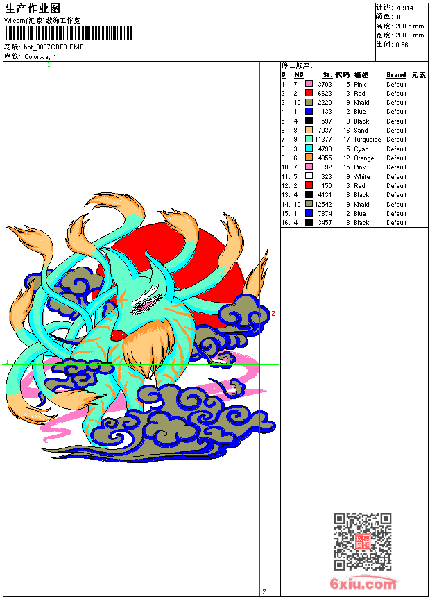 狐狸 九尾狐 点此上传花版兑乐绣币/现金 emb花版参数: 大小:332.50 KB / 尺寸:200*201[毫米] / 针数:70914针 / 线色:10 / 格式:emb / 版本:e2 版带文件需绣花软件方可打开,可配色打印导出各种格式或直接上机绣。如无绣花软件可下载1:1模拟效果图。 PNG图片信息:大小:0.9 (MB) /图宽*高:758x759(像素) emb下载 1:1图下载 关闭 相似花版: 梅花 靓花 汉服 梅花山 鞋 人物 武将 靓花 汉服 雨伞 鹤 鸟 鲤鱼 靓花 旗袍 男 章标 武士 凤凰 简单花 狮子 翅膀 老虎 东北虎 简单花 狗 日本土狗 秋天犬 保罗 兔 鞋垫 靓花 匹绣 上一个花样:靓花 下一个花样:梅花