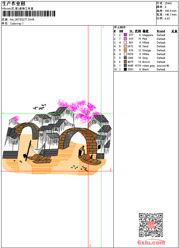 风景 江南水乡 点此上传花版兑乐绣币/现金 emb花版参数: 大小:133.00 KB / 尺寸:147*106[毫米] / 针数:25441针 / 线色:9 / 格式:emb / 版本:e2 版带文件需绣花软件方可打开,可配色打印导出各种格式或直接上机绣。如无绣花软件可下载1:1模拟效果图。 PNG图片信息:大小:0.3 (MB) /图宽*高:555x401(像素) emb下载 1:1图下载 关闭 相似花版: 靓花 狐狸 九尾狐 梅花 靓花 汉服 梅花山 鞋 人物 武将 靓花 汉服 雨伞 鹤 鸟 鲤鱼 靓花 旗袍 男 章标 武士 凤凰 简单花 狮子 翅膀 老虎 东北虎 简单花 狗 日本土狗 秋天犬 保罗 兔 上一个花样:汉服 下一个花样:靓花
