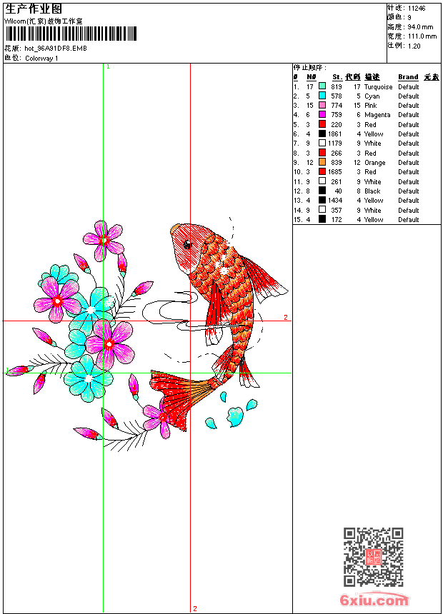 鲤鱼 汉服 点此上传花版兑乐绣币/现金 emb花版参数: 大小:128.00 KB / 尺寸:111*94[毫米] / 针数:11246针 / 线色:9 / 格式:emb / 版本:e2 版带文件需绣花软件方可打开,可配色打印导出各种格式或直接上机绣。如无绣花软件可下载1:1模拟效果图。 PNG图片信息:大小:0.2 (MB) /图宽*高:420x356(像素) emb下载 1:1图下载 关闭 相似花版: 靓花 旗袍 飞象 汉服 鞋垫 人物 哪吒 西游记 范思哲 波浪 古代 官服 花瓶 王冠 猫 猫 叮当猫 鞋垫 狗头 虎头 靓花 能猫 鹤 靓花 汉服 风景 江南水乡 上一个花样:汉服 下一个花样:靓花 旗袍