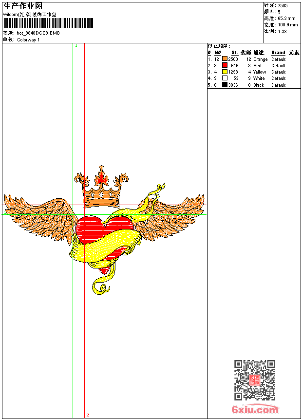 男王冠翅膀 点此上传花版兑乐绣币/现金 emb花版参数: 大小:85.50 KB / 尺寸:101*65[毫米] / 针数:7505针 / 线色:5 / 格式:emb / 版本:e2 版带文件需绣花软件方可打开,可配色打印导出各种格式或直接上机绣。如无绣花软件可下载1:1模拟效果图。 PNG图片信息:大小:0.1 (MB) /图宽*高:382x247(像素) emb下载 1:1图下载 关闭 相似花版: 孔雀 章 熊猫 福圆 汉服 鲤鱼 汉服 靓花 旗袍 飞象 汉服 鞋垫 人物 哪吒 西游记 范思哲 波浪 古代 官服 花瓶 王冠 猫 猫 叮当猫 鞋垫 狗头 虎头 上一个花样:靓花 旗袍 下一个花样:孔雀