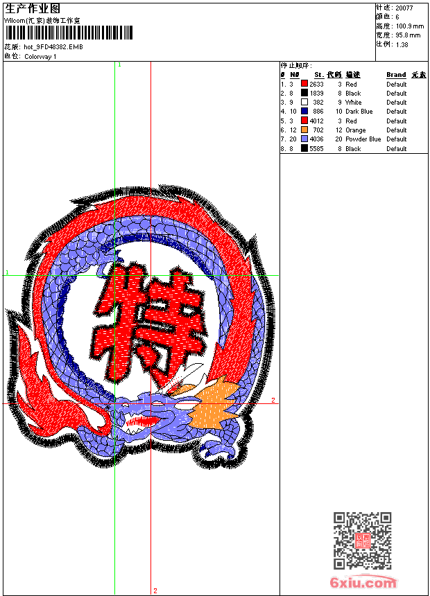 龙 点此上传花版兑乐绣币/现金 emb花版参数: 大小:139.00 KB / 尺寸:96*101[毫米] / 针数:20077针 / 线色:6 / 格式:emb / 版本:e2 版带文件需绣花软件方可打开,可配色打印导出各种格式或直接上机绣。如无绣花软件可下载1:1模拟效果图。 PNG图片信息:大小:0.2 (MB) /图宽*高:363x382(像素) emb下载 1:1图下载 关闭 相似花版: 蝴蝶 猫 龙 靓花 旗袍 波浪 古代 官服 鸟语花香 梅花 鞋垫 保罗 汉服 风景 桥 建筑 狐狸 凤凰 猫 猫 猫 靓花 汉服 鞋垫 鸟语花香 圆 太极 上一个花样:靓花 下一个花样:蝴蝶