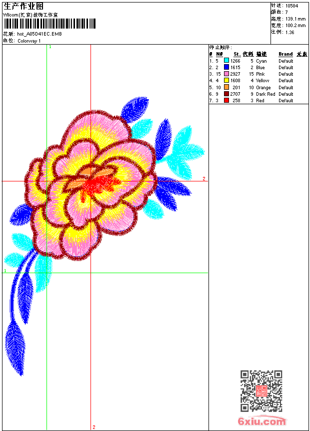 靓花 点此上传花版兑乐绣币/现金 emb花版参数: 大小:88.50 KB / 尺寸:100*139[毫米] / 针数:10584针 / 线色:7 / 格式:emb / 版本:e2 版带文件需绣花软件方可打开,可配色打印导出各种格式或直接上机绣。如无绣花软件可下载1:1模拟效果图。 PNG图片信息:大小:0.2 (MB) /图宽*高:379x526(像素) emb下载 1:1图下载 关闭 相似花版: 裙花 鸟 风景 上海滩 靓花 龙 蝴蝶 猫 龙 靓花 旗袍 波浪 古代 官服 鸟语花香 梅花 鞋垫 保罗 汉服 风景 桥 建筑 狐狸 凤凰 猫 猫 上一个花样:民族装饰 下一个花样:裙花