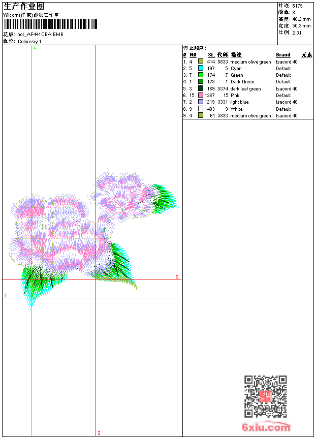 靓花 点此上传花版兑乐绣币/现金 emb花版参数: 大小:73.50 KB / 尺寸:50*40[毫米] / 针数:5179针 / 线色:8 / 格式:emb / 版本:e2 版带文件需绣花软件方可打开,可配色打印导出各种格式或直接上机绣。如无绣花软件可下载1:1模拟效果图。 PNG图片信息:大小:0.1(MB) /图宽*高:191x153(像素) emb下载 1:1图下载 关闭 相似花版: 狗 男章标 龙凤 金童玉女 靓花 旗袍 靓花 鸟章 章标 靓花 汉服 鸟 狮头标 虎 猛虎 凤凰 梅花鹿 龙鞋 恭喜发财 靓花 猫 豹头 扇子 上一个花样:猫 下一个花样:狗