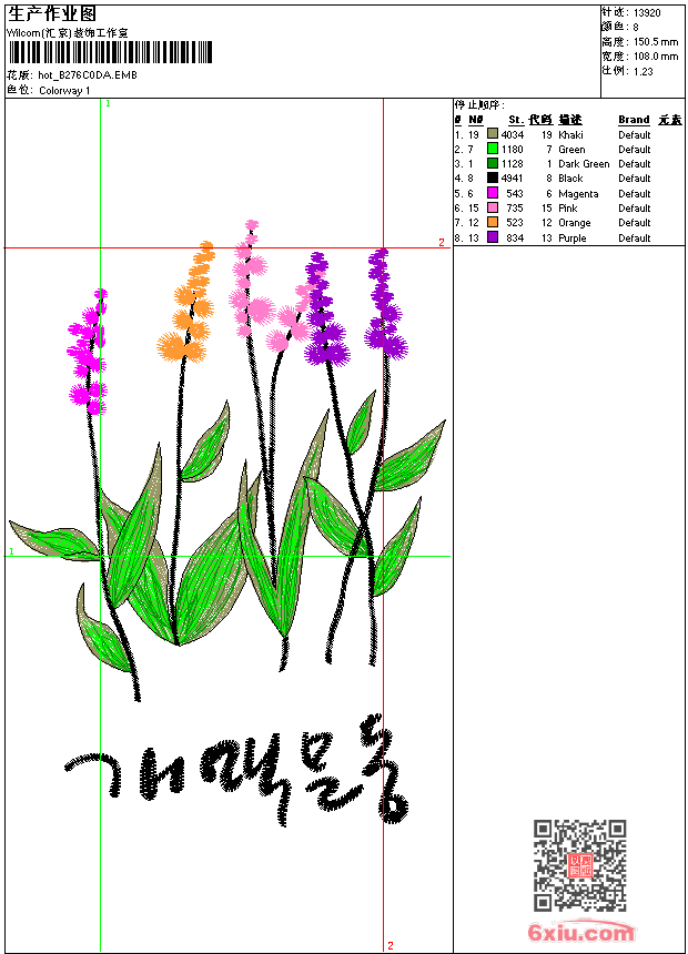 草 薰衣草 点此上传花版兑乐绣币/现金 emb花版参数: 大小:98.00 KB / 尺寸:108*151[毫米] / 针数:13920针 / 线色:8 / 格式:emb / 版本:e2 版带文件需绣花软件方可打开,可配色打印导出各种格式或直接上机绣。如无绣花软件可下载1:1模拟效果图。 PNG图片信息:大小:0.2 (MB) /图宽*高:409x570(像素) emb下载 1:1图下载 关闭 相似花版: 荷花 兽 上古神兽 火光兽 汉服 男章标 凤凰 汉服 鸟 汉服 飞猪 猫 靓花 狗 男章标 龙凤 金童玉女 靓花 旗袍 靓花 鸟章 章标 靓花 汉服 上一个花样:珠片花 下一个花样:荷花