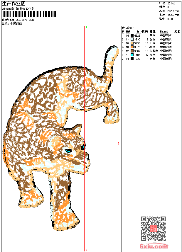 豹 点此上传花版兑乐绣币/现金 emb花版参数: 大小:232.00 KB / 尺寸:153*242[毫米] / 针数:27142针 / 线色:6 / 格式:emb / 版本:e2 版带文件需绣花软件方可打开,可配色打印导出各种格式或直接上机绣。如无绣花软件可下载1:1模拟效果图。 PNG图片信息:大小:0.5 (MB) /图宽*高:578x917(像素) emb下载 1:1图下载 关闭 相似花版: 鞋垫 狗 麒麟 神兽 男章标 靓花 旗袍 鞋龙 猪 抽象马 鞋龙 虎头 汉服 靓花 V标 珠片花 草 薰衣草 荷花 兽 上古神兽 火光兽 汉服 男章标 凤凰 上一个花样:蝴蝶花 下一个花样:鞋垫