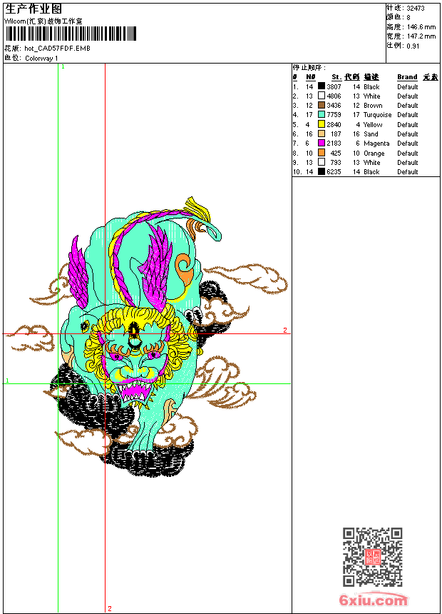 麒麟 神兽 点此上传花版兑乐绣币/现金 emb花版参数: 大小:215.50 KB / 尺寸:147*147[毫米] / 针数:32473针 / 线色:8 / 格式:emb / 版本:e2 版带文件需绣花软件方可打开,可配色打印导出各种格式或直接上机绣。如无绣花软件可下载1:1模拟效果图。 PNG图片信息:大小:0.4 (MB) /图宽*高:557x555(像素) emb下载 1:1图下载 关闭 相似花版: 飞机 欧式装饰屏风 鞋垫 鹤 旗袍 汉服 梅花 狮头 鸟语花香 靓花 旗袍 蝴蝶 汉服 汉服 保罗 虎 武将宋刀 鞋垫 凤凰 汉服 猩猩 猴 汉服 狼头标 汉服 汉服 上一个花样:人物 丘比特 光屁股男孩 下一个花样:飞机