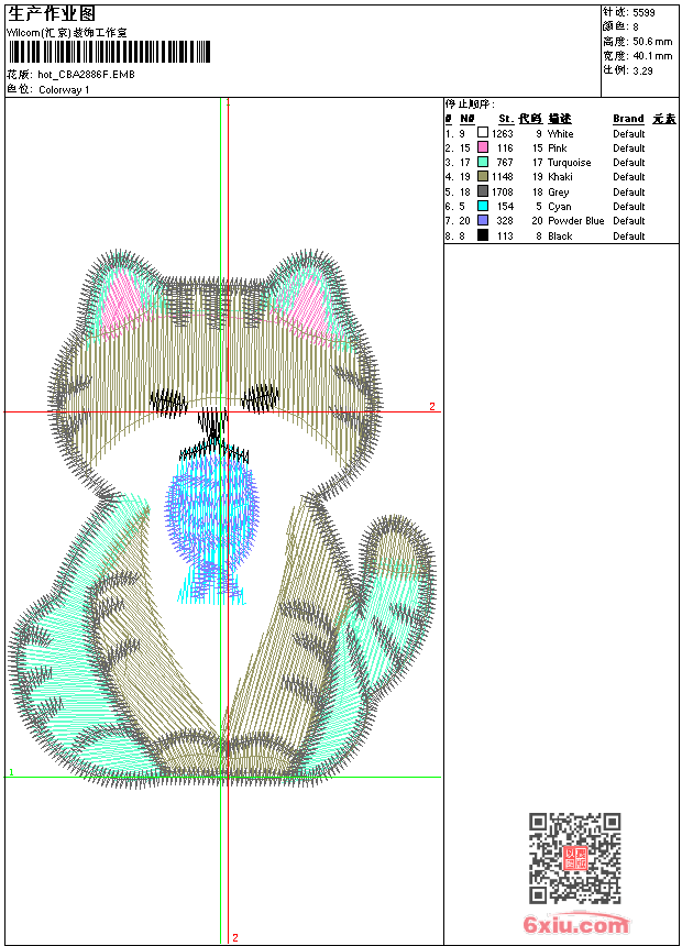 猫 点此上传花版兑乐绣币/现金 emb花版参数: 大小:63.00 KB / 尺寸:40*51[毫米] / 针数:5599针 / 线色:8 / 格式:emb / 版本:e2 版带文件需绣花软件方可打开,可配色打印导出各种格式或直接上机绣。如无绣花软件可下载1:1模拟效果图。 PNG图片信息:大小:0.1 (MB) /图宽*高:152x192(像素) emb下载 1:1图下载 关闭 相似花版: 鸟 京剧 人物 鞋 人物 丘比特 光屁股男孩 麒麟 神兽 飞机 欧式装饰屏风 鞋垫 鹤 旗袍 汉服 梅花 狮头 鸟语花香 靓花 旗袍 蝴蝶 汉服 汉服 保罗 虎 武将宋刀 鞋垫 凤凰 汉服 猩猩 猴 上一个花样:牛 下一个花样:鸟