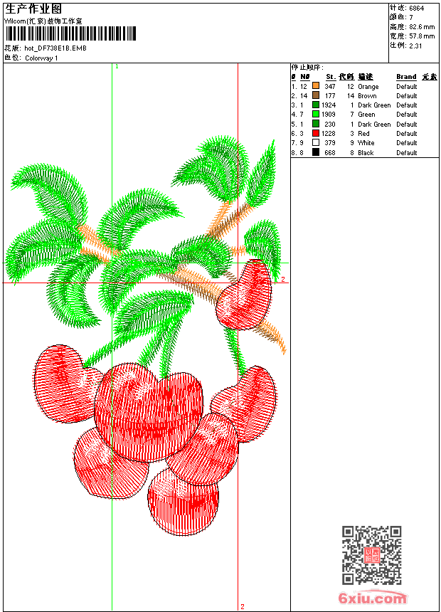 果 樱桃 点此上传花版兑乐绣币/现金 emb花版参数: 大小:71.50 KB / 尺寸:58*83[毫米] / 针数:6864针 / 线色:7 / 格式:emb / 版本:e2 版带文件需绣花软件方可打开,可配色打印导出各种格式或直接上机绣。如无绣花软件可下载1:1模拟效果图。 PNG图片信息:大小:0.1 (MB) /图宽*高:219x313(像素) emb下载 1:1图下载 关闭 相似花版: 鸟 狗 靓花 鞋垫 龙 变色龙 虎 猛虎上山 靓花 汉服 鞋垫 时光不老我们不散 同学会周年纪念 荷花 孔雀 靓花 风景 亭台楼阁 靓花 孔雀 凤凰 蜜蜂 靓花 旗袍 凤凰 龙 上一个花样:鹤 火烈鸟 下一个花样:鸟