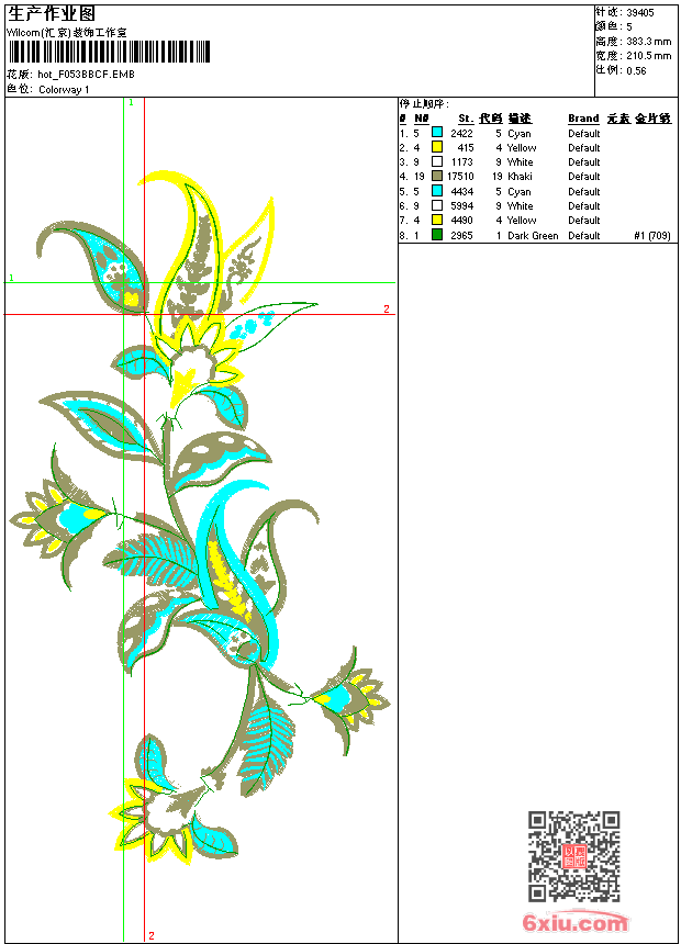 珠片花 点此上传花版兑乐绣币/现金 emb花版参数: 大小:303.50 KB / 尺寸:211*383[毫米] / 针数:39405针 / 线色:5 / 格式:emb / 版本:e2 版带文件需绣花软件方可打开,可配色打印导出各种格式或直接上机绣。如无绣花软件可下载1:1模拟效果图。 PNG图片信息:大小:0.7 (MB) /图宽*高:797x1450(像素) emb下载 1:1图下载 关闭 相似花版: 猪 梅花 美女 龙争鹤斗 狼嚎 鸟圆扇子 鸟 鹦鹉 虎头 靓花 鹤 荷花 虎头鞋 龙 狗 鞋 孙悟空 龙 靓花 旗袍 靓花 麒麟 神兽 孔雀 蜜蜂章标 上一个花样:虎头 下一个花样:猪