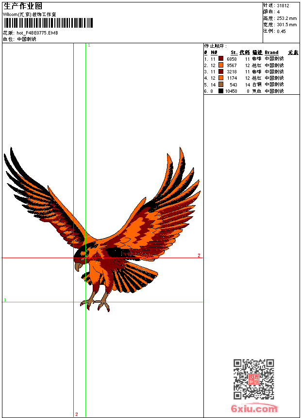 鹰 点此上传花版兑乐绣币/现金 emb花版参数: 大小:166.00 KB / 尺寸:302*253[毫米] / 针数:31812针 / 线色:4 / 格式:emb / 版本:e2 版带文件需绣花软件方可打开,可配色打印导出各种格式或直接上机绣。如无绣花软件可下载1:1模拟效果图。 PNG图片信息:大小:0.8 (MB) /图宽*高:1141x958(像素) emb下载 1:1图下载 关闭 相似花版: 鹤 鸟 靓花 旗袍 鸟 鸟 靓花 旗袍 凤凰 领水溶 鸟精品 鹤 靓花 猫头 梅花 汉服 狗尾巴草 猪 心想事成 孔雀开屏 汉服 美女 鸟 上一个花样:骷髅章 下一个花样:鹤