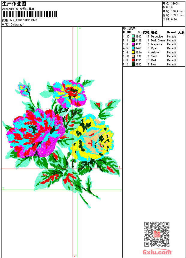 靓花 点此上传花版兑乐绣币/现金 emb花版参数: 大小:251.50 KB / 尺寸:159*180[毫米] / 针数:38058针 / 线色:8 / 格式:emb / 版本:e2 版带文件需绣花软件方可打开,可配色打印导出各种格式或直接上机绣。如无绣花软件可下载1:1模拟效果图。 PNG图片信息:大小:0.5 (MB) /图宽*高:602x683(像素) emb下载 1:1图下载 关闭 相似花版: 汉服 十字绣 靓花 旗袍 骷髅章 鹰 鹤 鸟 靓花 旗袍 鸟 鸟 靓花 旗袍 凤凰 领水溶 鸟精品 鹤 靓花 猫头 梅花 汉服 狗尾巴草 上一个花样:靓花 下一个花样:汉服