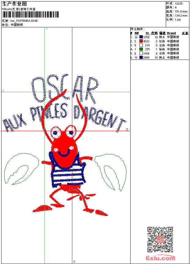 虾 点此上传花版兑乐绣币/现金 emb花版参数: 大小:132.00 KB / 尺寸:134*152[毫米] / 针数:12235针 / 线色:4 / 格式:emb / 版本:e2 版带文件需绣花软件方可打开,可配色打印导出各种格式或直接上机绣。如无绣花软件可下载1:1模拟效果图。 PNG图片信息:大小:0.2 (MB) /图宽*高:508x574(像素) emb下载 1:1图下载 关闭 相似花版: 兽 神兽 靓花 熊 鞋垫 靓花 旗袍 保罗 凤凰 猪 大吉大利 男 皮卡大队 越野车 猫 靓花 靓花 米奇 保罗 靓花 鹤 鸟 靓花 梅花 靓花 上一个花样:鸟 下一个花样:兽 神兽