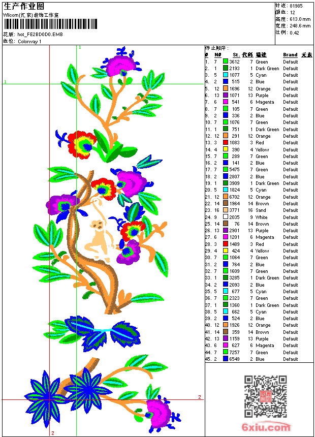 靓花 猴 点此上传花版兑乐绣币/现金 emb花版参数: 大小:419.50 KB / 尺寸:249*613[毫米] / 针数:81985针 / 线色:12 / 格式:emb / 版本:e2 版带文件需绣花软件方可打开,可配色打印导出各种格式或直接上机绣。如无绣花软件可下载1:1模拟效果图。 PNG图片信息:大小:1.7 (MB) /图宽*高:941x2319(像素) emb下载 1:1图下载 关闭 相似花版: 鸟 虾 兽 神兽 靓花 熊 鞋垫 靓花 旗袍 保罗 凤凰 猪 大吉大利 男 皮卡大队 越野车 猫 靓花 靓花 米奇 保罗 靓花 鹤 鸟 靓花 上一个花样:汉服 下一个花样:鸟