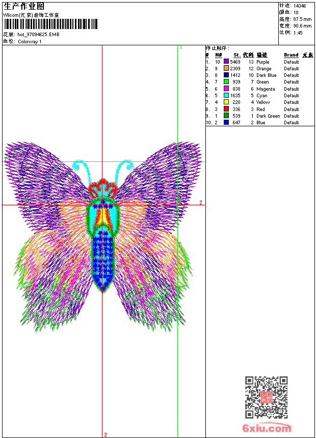 蝴蝶 点此上传花版兑乐绣币/现金 emb花版参数: 大小:90.50 KB / 尺寸:91*87[毫米] / 针数:14346针 / 线色:10 / 格式:emb / 版本:e2 版带文件需绣花软件方可打开,可配色打印导出各种格式或直接上机绣。如无绣花软件可下载1:1模拟效果图。 PNG图片信息:大小:0.2 (MB) /图宽*高:343x331(像素) emb下载 1:1图下载 关闭 相似花版: 靓花 男装 章仔 骷髅 靓花 男装 章仔 保罗 骑马 蝴蝶 男装 章仔 保罗 骑马 靓花 男装 章仔 靓花 花瓶 鸟 汉服 猫 汉服 靓花 猴 鸟 虾 兽 神兽 上一个花样:男装 章仔 下一个花样:靓花