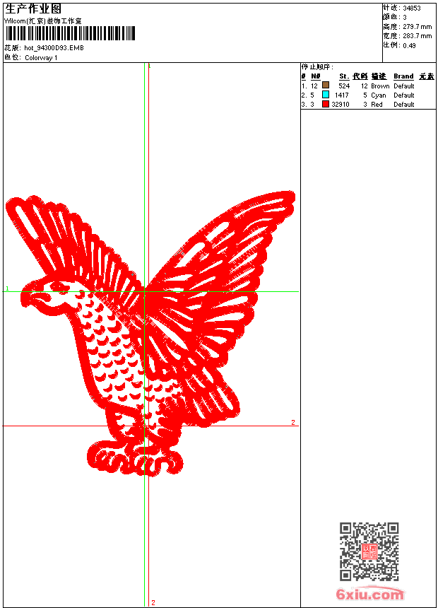 鹰 点此上传花版兑乐绣币/现金 emb花版参数: 大小:189.50 KB / 尺寸:284*280[毫米] / 针数:34853针 / 线色:3 / 格式:emb / 版本:e2 版带文件需绣花软件方可打开,可配色打印导出各种格式或直接上机绣。如无绣花软件可下载1:1模拟效果图。 PNG图片信息:大小:0.9 (MB) /图宽*高:1073x1059(像素) emb下载 1:1图下载 关闭 相似花版: 动漫 美国队长 靓花 男装 章仔 蛇 蛇 男装 章仔 鲤鱼 狮头 狮头 虎头 蜜蜂 蜜蜂 蜻蜓 范思哲 梅花鹿 蜻蜓 蜜蜂 男装 章仔 人物 头像 人物 头像 上一个花样:猫头鹰 下一个花样:动漫 美国队长