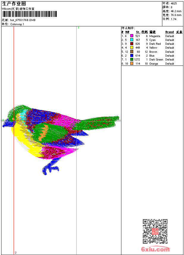 鸟 点此上传花版兑乐绣币/现金 emb花版参数: 大小:54.00 KB / 尺寸:77*46[毫米] / 针数:4025针 / 线色:8 / 格式:emb / 版本:e2 版带文件需绣花软件方可打开,可配色打印导出各种格式或直接上机绣。如无绣花软件可下载1:1模拟效果图。 PNG图片信息:大小:0.1 (MB) /图宽*高:290x175(像素) emb下载 1:1图下载 关闭 相似花版: 领 头像 飞机 闪电 鸟 鸟 鸟 鸟 鸟 猫头鹰 虎头 猫头鹰 鸟 猫头鹰 鹰 动漫 美国队长 靓花 男装 章仔 蛇 蛇 上一个花样:鸟 下一个花样:领