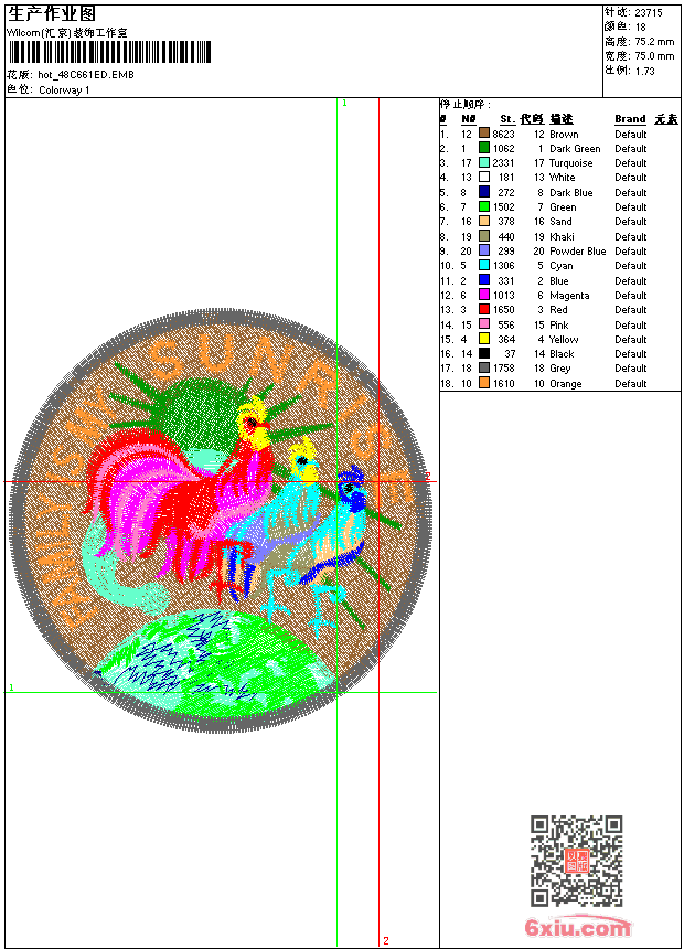 公鸡 点此上传花版兑乐绣币/现金 emb花版参数: 大小:120.00 KB / 尺寸:75*75[毫米] / 针数:23715针 / 线色:18 / 格式:emb / 版本:e2 版带文件需绣花软件方可打开,可配色打印导出各种格式或直接上机绣。如无绣花软件可下载1:1模拟效果图。 PNG图片信息:大小:0.2 (MB) /图宽*高:284x285(像素) emb下载 1:1图下载 关闭 相似花版: 蛇 蛇 头像 范思哲 鸟 鸟 领 头像 飞机 闪电 鸟 鸟 鸟 鸟 鸟 猫头鹰 虎头 猫头鹰 鸟 猫头鹰 上一个花样:男装 章仔 下一个花样:蛇