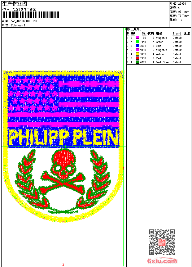 骷髅 男装 章仔 点此上传花版兑乐绣币/现金 emb花版参数: 大小:112.00 KB / 尺寸:78*97[毫米] / 针数:23954针 / 线色:6 / 格式:emb / 版本:e2 版带文件需绣花软件方可打开,可配色打印导出各种格式或直接上机绣。如无绣花软件可下载1:1模拟效果图。 PNG图片信息:大小:0.2 (MB) /图宽*高:294x368(像素) emb下载 1:1图下载 关闭 相似花版: 骷髅 国旗 飞机 骷髅 豹头 汉服 鸟 鸟 猫头鹰 男装 章仔 公鸡 蛇 蛇 头像 范思哲 鸟 鸟 领 头像 飞机 闪电 上一个花样:豹头 下一个花样:骷髅 国旗