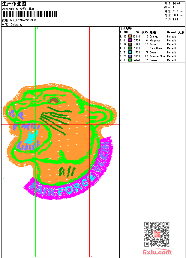 豹头 点此上传花版兑乐绣币/现金 emb花版参数: 大小:88.00 KB / 尺寸:80*81[毫米] / 针数:24407针 / 线色:7 / 格式:emb / 版本:e2 版带文件需绣花软件方可打开,可配色打印导出各种格式或直接上机绣。如无绣花软件可下载1:1模拟效果图。 PNG图片信息:大小:0.2 (MB) /图宽*高:304x309(像素) emb下载 1:1图下载 关闭 相似花版: 骷髅 男装 章仔 骷髅 国旗 飞机 骷髅 豹头 汉服 鸟 鸟 猫头鹰 男装 章仔 公鸡 蛇 蛇 头像 范思哲 鸟 鸟 领 头像 飞机 上一个花样:范思哲 下一个花样:骷髅 男装 章仔